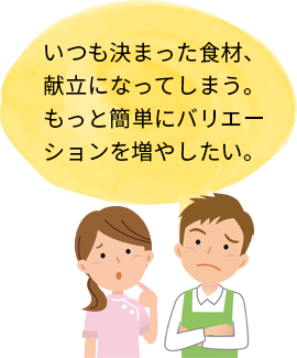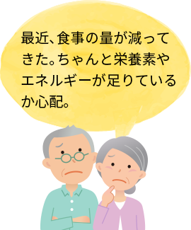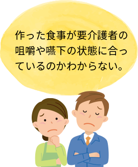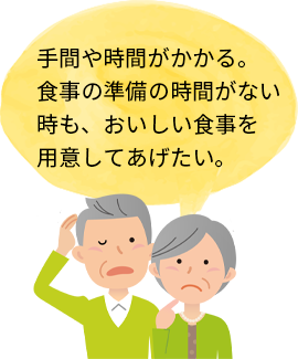お食事のお悩みは、在宅介護されている方に共通のお悩みです。日清オイリオグループの在宅介護事情調査(2017年)では多くの方々が、具体的に次のようなお悩みを持っていることがわかりました。